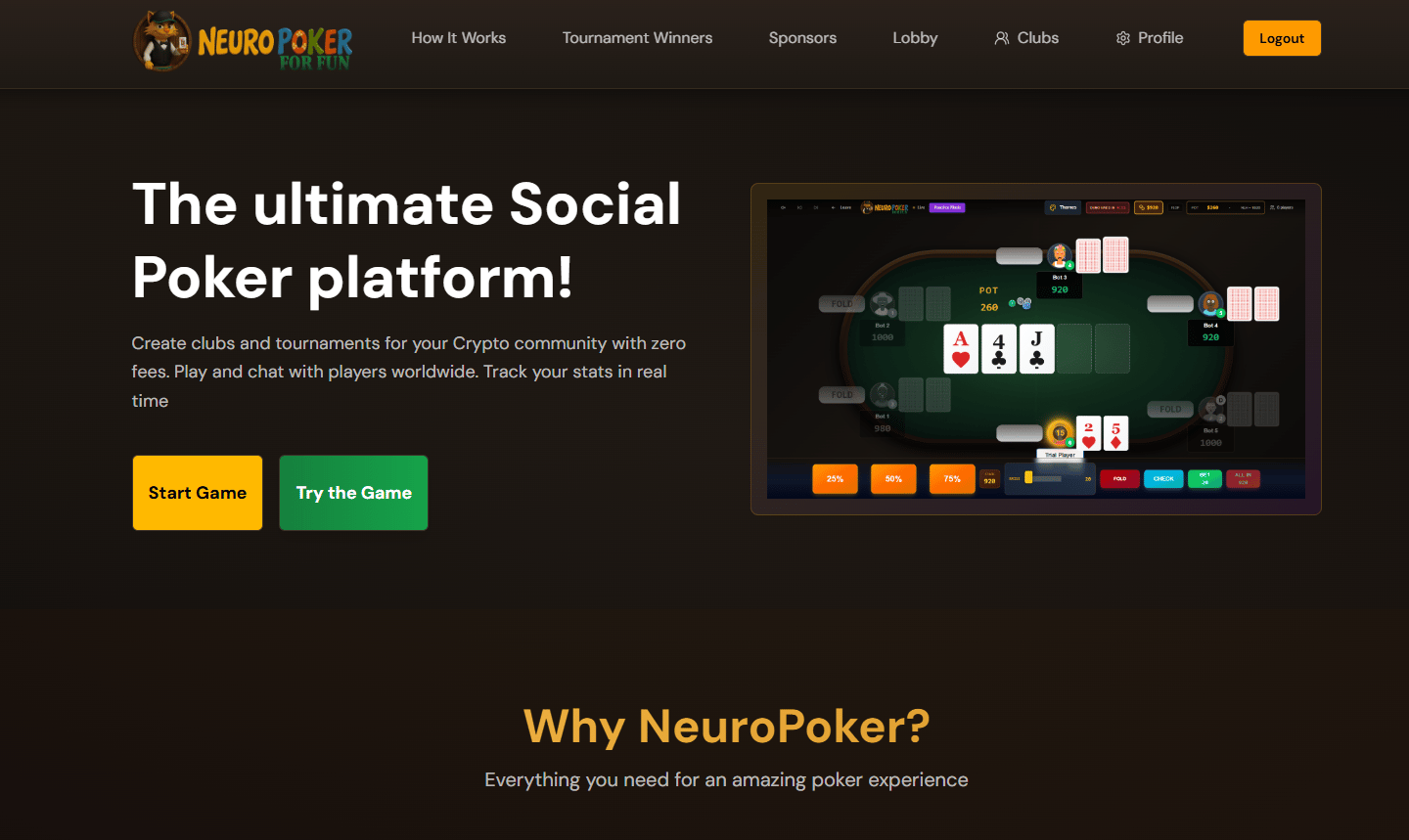 NeuroPoker is a Social Poker platform designed for crypto and Web3 communities.